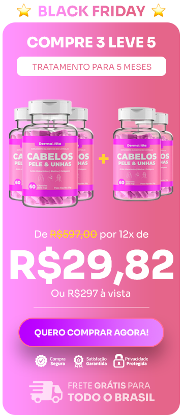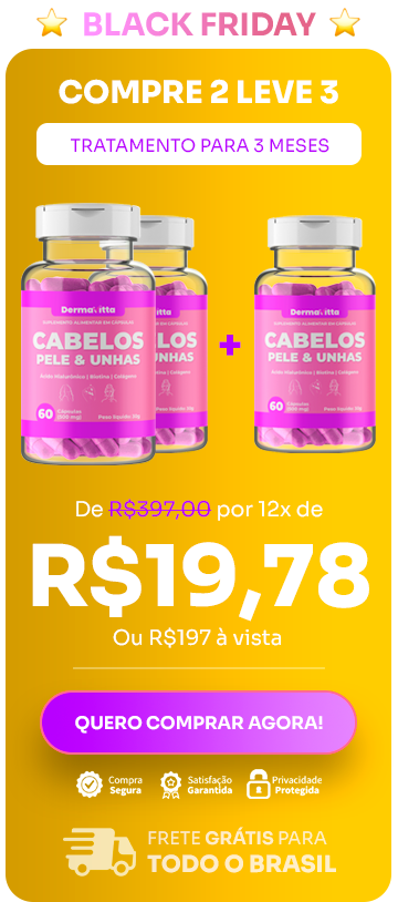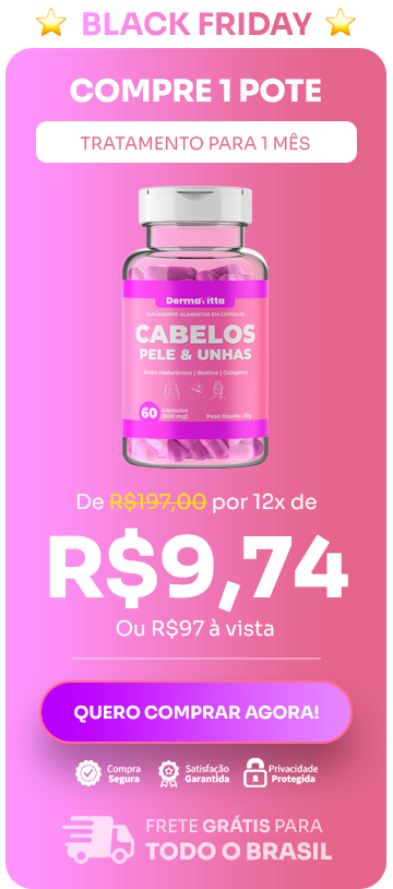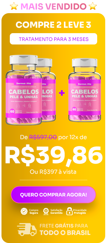 O Dermavitta é um produto com uma fórmula avançada reúne 9 ativos essenciais em alta concentração, aliados à tecnologia de encapsulamento que garante máxima absorção pelo organismo. Essa combinação estimula a produção natural de colágeno, fortalece unhas, devolve a vitalidade e o volume dos cabelos e mantém a pele jovem, firme e radiante por muito mais tempo.